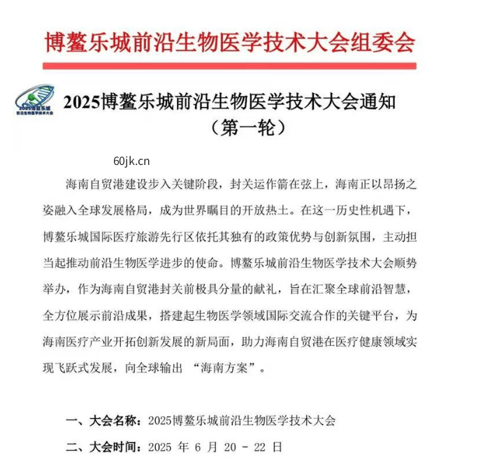 2025年6月20日至22日,由中国科协生命科学学会联合体与海南大学联合主办的“2025博鳌乐城前沿生物医学技术大会”将在此启幕。本次大会以“乐城启航·定义新一代医疗革命”为主题,旨在汇聚全球智慧,推动生物医学技术的创新突与产业转化,为海南自贸港医疗健康领域的高质量发展注入新动能。